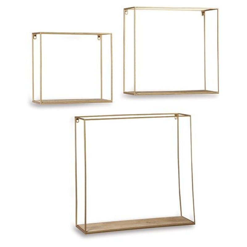 This 3-piece wall shelf set creates multi-dimensional appeal on your wall. Its linear design is elevated with an unexpected fashion-forward combination of goldtone metal and natural wood. Varying sizes give you the freedom to showcase what you want, where