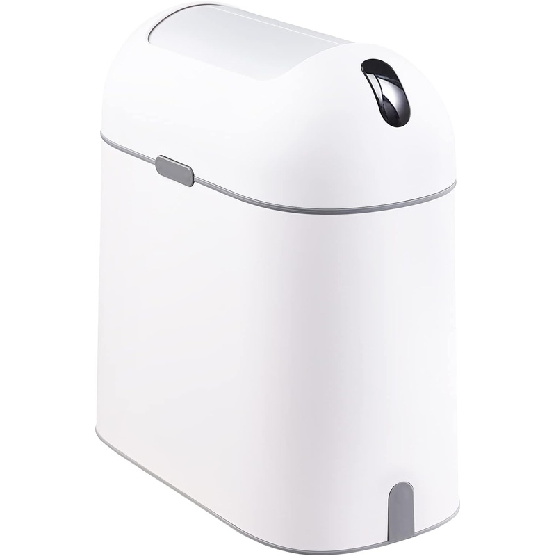 ELPHECO Motion Sensor Bathroom Trash Can, 2.5 Gallon Waterproof Trash Bin with Butterfly lid, Bathroom Waste Basket Garbage Bin for Bedroom Kitchen and Office use, White with Grey Button Hassle-free One Year Warranty Your 100% satisfaction is assured and s
