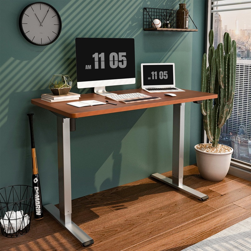 Electric Height Adjustable 48×30 Whole-piece Desktop Standard Up&Down 2-Button Controller 154 lbs Weight Capacity 28-47.6 Quick & Smooth Adjustments Gray Desk Frame and Mahogany Desktop