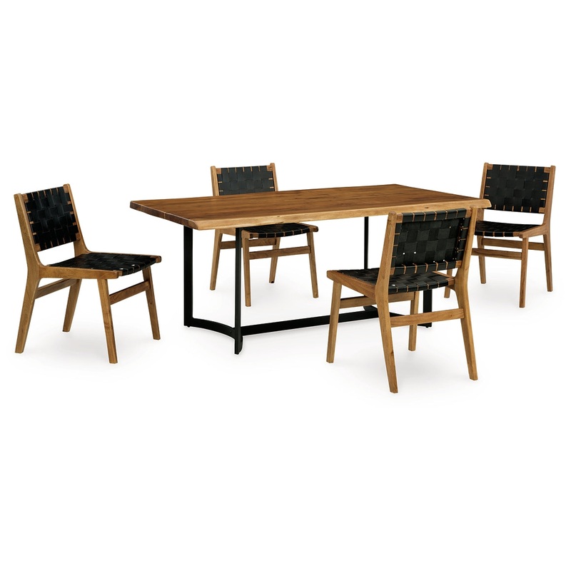 This dining package takes minimalism to the max. Crafted with a sleek and sophisticated touch, your search for simple, contemporary design ends here.SpecificationsDetailsD872-25: Made with acacia wood, Solid wood tabletop with natural live edge, Light wood