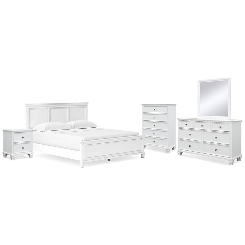 | Details | B680B5: Includes California king panel headboard, footboard and rails, Made with hardwood solids and MDF substrate, White painted finish, Tapered feet, Foundation/box spring required, sold separately, Mattress available, sold separately, Assembly required, Bed is compatible with an adjustable base, B680B1: Includes dresser and mirror, Made with hardwood solids and MDF substrate, White painted finish, 7 smooth-gliding drawers with dovetail construction and ball-bearing side glides, Round metal drawer knobs with satin nickel-tone finish, Tapered feet, Mirror attaches to back of dresser, Assembly required, B680-46: Made with hardwood solids and MDF substrate, White painted finish, Round metal drawer knobs with satin nickel-tone finish, Tapered feet, Framed drawer fronts, 5 smooth-gliding drawers with dovetail construction and ball-bearing side glides, B680-92: Made with hardwood solids and MDF substrate, White painted finish, Round metal drawer knobs with satin nickel-tone finish, Tapered feet, Framed drawer fronts, 2 smooth-gliding drawers with dovetail construction and ball-bearing side glides, |