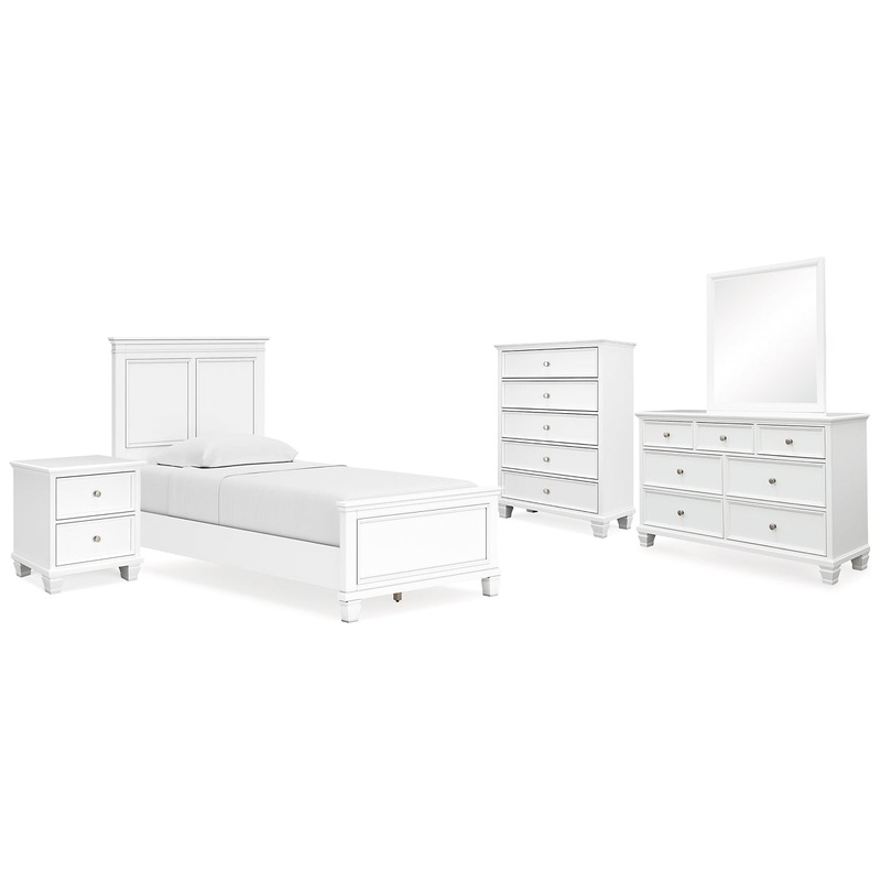 | Details | B680B6: Includes twin panel headboard, footboard and rails, Made with hardwood solids and MDF substrate, White painted finish, Tapered feet, Foundation/box spring required, sold separately, Mattress available, sold separately, Assembly required, Bed is compatible with an adjustable base, B680B1: Includes dresser and mirror, Made with hardwood solids and MDF substrate, White painted finish, 7 smooth-gliding drawers with dovetail construction and ball-bearing side glides, Round metal drawer knobs with satin nickel-tone finish, Tapered feet, Mirror attaches to back of dresser, Assembly required, B680-46: Made with hardwood solids and MDF substrate, White painted finish, Round metal drawer knobs with satin nickel-tone finish, Tapered feet, Framed drawer fronts, 5 smooth-gliding drawers with dovetail construction and ball-bearing side glides, B680-92: Made with hardwood solids and MDF substrate, White painted finish, Round metal drawer knobs with satin nickel-tone finish, Tapered feet, Framed drawer fronts, 2 smooth-gliding drawers with dovetail construction and ball-bearing side glides, |