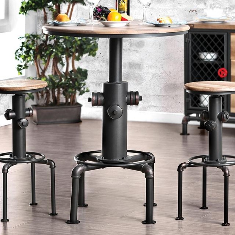 Foskey Antique Black Bar Table, 32″DIA X 42″H, 55.74lbs. Transform unique into functional with this fire-hydrant themed counter height table. Featuring a tall pedestal, this fun table is constructed out of durable metal and features a spacious round table top. Rest your feet on the attached footrest while your guests marvel at your distinct and absolutely delightful style. Features: Industrial Style Fire-Hydrant Inspired Base Swivel Round Bar Stool Sturdy Metal Construction Metal/Others Natural Tone Finish Hand-brushed Copper Details Antique Black Finish