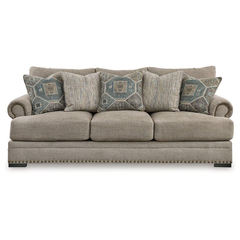Looking to enhance your home’s visual appeal? This sofa offers sophisticated design, comfort and elegance with tonal colors, roll arms and nailhead accents. Enjoy optimal coziness as you nestle into luxurious soft upholstery and feather-blend cushions. Perfect for modern spaces, it’s just the spot to sit back and relax in style.