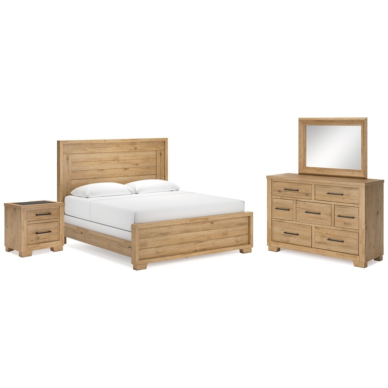 | Details | B841B4: Includes panel headboard and footboard with rails, Made with hardwood solids and thick rustic oak veneer, Glazed natural light oak color finish enhances the natural characteristics of the veneer, Thick metal bar pulls with a hammered textural surface in an aged bronze-tone finish, Foundation/box spring required, sold separately, Mattress available, sold separately, Natural wood may display natural weathering, unique cracks, splits, knots, saw marks or other organic features unique to each piece, Assembly required, B841B1: Includes dresser and mirror, Made with hardwood solids and thick rustic oak veneer, Glazed natural light oak color finish enhances the natural characteristics of the veneer, Thick metal bar pulls with a hammered textural surface in an aged bronze-tone finish, 7 drawers with fully finished interior, dovetail construction and ball-bearing side glides, Natural wood may display natural weathering, unique cracks, splits, knots, saw marks or other organic features unique to each piece, Mirror attaches to back of dresser, B841-92: Made with hardwood solids and thick rustic oak veneer, Glazed natural light oak color finish enhances the natural characteristics of the veneer, Top with cement tile inlay, Thick metal bar pulls with a hammered textural surface in an aged bronze-tone finish, 2 drawers with fully finished interior, dovetail construction and ball-bearing side glides, 110V power supply with dual USB charging ports, Natural wood may display natural weathering, unique cracks, splits, knots, saw marks or other organic features unique to each piece, Power cord included; UL Listed, |