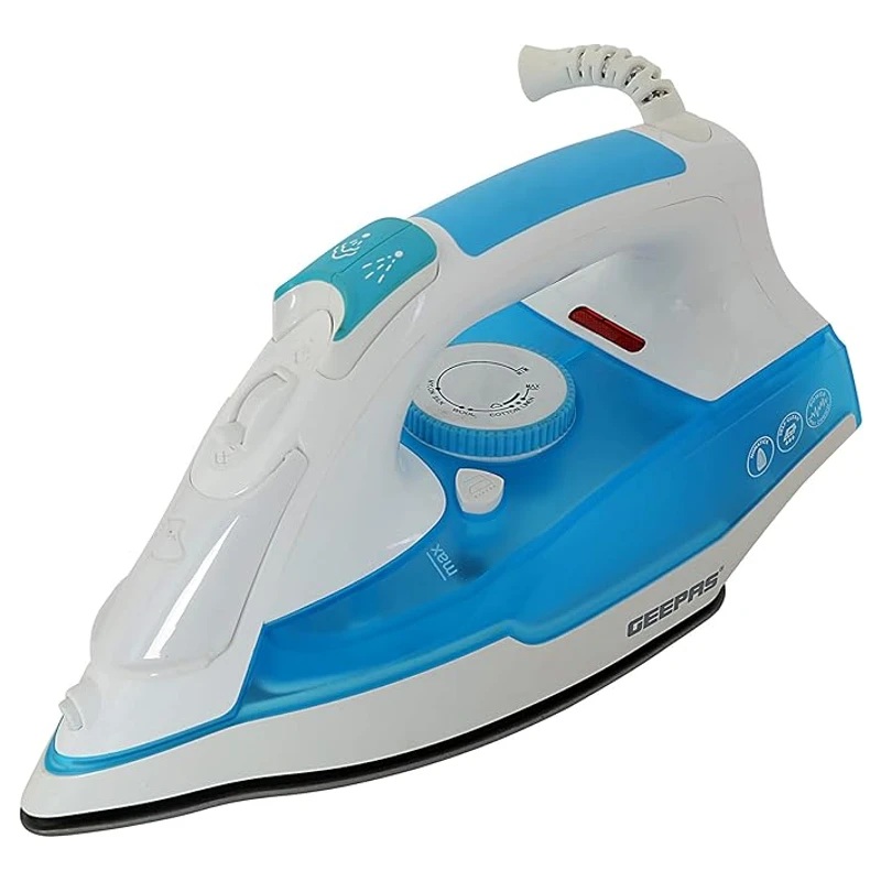 Geepas Steam Iron 2000-2400W | GSI17809 The Geepas GSI17809 Steam Iron combines high power and advanced features to deliver exceptional performance for your ironing tasks. With a powerful 2000-2400W heating capability, this steam iron ensures rapid heat-up