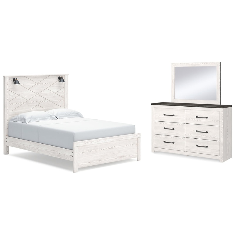 | Details | B1190B7: Includes queen panel headboard, footboard and rails, Made with engineered wood (MDF/particleboard) and decorative laminate, White rustic finish with replicated cedar grain and authentic touch, 2 decorative sconce lights, Lights in matte black finish with champagne-colored accents, Headboard with abstract design, Power cord included; UL Listed, Foundation/box spring required, sold separately, Mattress not included, sold separately, Assembly required, Bed is compatible with an adjustable base, B1190B1: Includes dresser with mirror, Made of engineered wood (MDF/particleboard) and decorative laminate, White rustic finish with replicated cedar grain, Rustic gray planked replicated oak grain with authentic touch, 6 smooth-gliding drawers with faux linen lining, Large scale dark colored handles, Mirror attaches to back of dresser, Assembly required, |