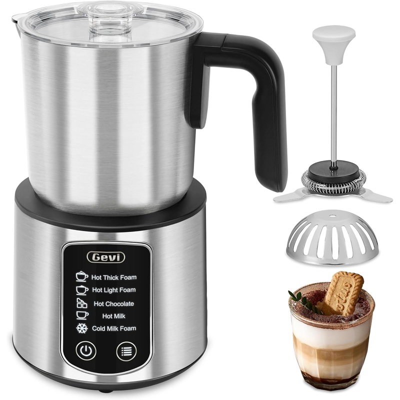 Gevi Hot Chocolate Maker with 5 in 1 Milk Frother and Steamer, Professional Milk Steamer, 17 oz/3.5 oz, Stainless Steel, Hot and Cold Milk Frother for Latte, Macchiato, Cappuccino and Hot Chocolate