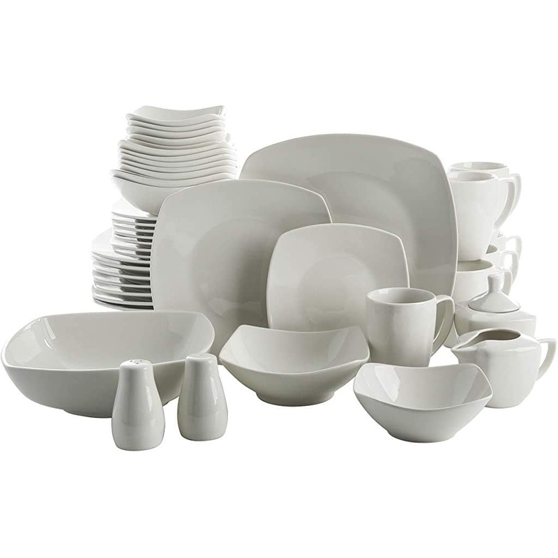 Gibson Home Zen Buffet Dinnerware Set, Service for 6 (39pcs), White (Square)