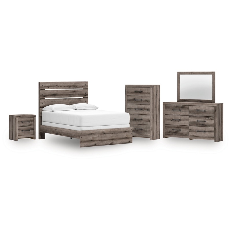 | Details | PCB2405B13: Includes panel headboard/footboard and rails, Made with engineered wood (MDF/particleboard/plywood) and decorative laminate for the right balance of affordability and durability , Weathered gray finish over replicated oak grain, Decorative laminate replicates natural or man-made material surfaces with consistent color, pattern and texture, Foundation/box spring required, sold separately , Mattress available, sold separately, Minor assembly required, PCB2405B1: Includes dresser and mirror, Made with engineered wood (MDF/particleboard/plywood) and decorative laminate for the right balance of affordability and durability , Weathered gray finish over replicated oak grain, Decorative laminate replicates natural or man-made material surfaces with consistent color, pattern and texture, Large-scale dark colored handles, 6 smooth-gliding drawers, Drawer interiors are lined with a faux linen laminate for a clean, finished look , Safety is a top priority, clothing storage units are designed to meet the most current standard for stability, ASTM F 2057 (ASTM International), Drawers extend out to accommodate maximum access to drawer interior while maintaining safety, Mirror attaches to back of dresser; can also be mounted on wall horizontally or vertically , Minor assembly required, PCB2405-46: Made with engineered wood (MDF/particleboard/plywood) and decorative laminate for the right balance of affordability and durability, Weathered gray finish over replicated oak grain, Decorative laminate replicates natural or man-made material surfaces with consistent color, pattern and texture, Large-scale dark colored handles, 5 smooth-gliding drawers, Drawer interiors are lined with a faux linen laminate for a clean, finished look, Safety is a top priority, clothing storage units are designed to meet the most current standard for stability, ASTM F 2057 (ASTM International), Drawers extend out to accommodate maximum access to drawer interior while maintaining safety, Minor assembly required, PCB2405-92: Made with engineered wood (MDF/particleboard/plywood) and decorative laminate for the right balance of affordability and durability, Weathered gray finish over replicated oak wood grain, Decorative laminate replicates natural or man-made material surfaces with consistent color, pattern and texture, Large-scale dark colored handles, 2 smooth-gliding drawers, Drawer interiors are lined with a faux linen laminate for a clean, finished look, 2 slim-profile USB-C charging ports, Power cord included; UL Listed, Minor assembly required, |