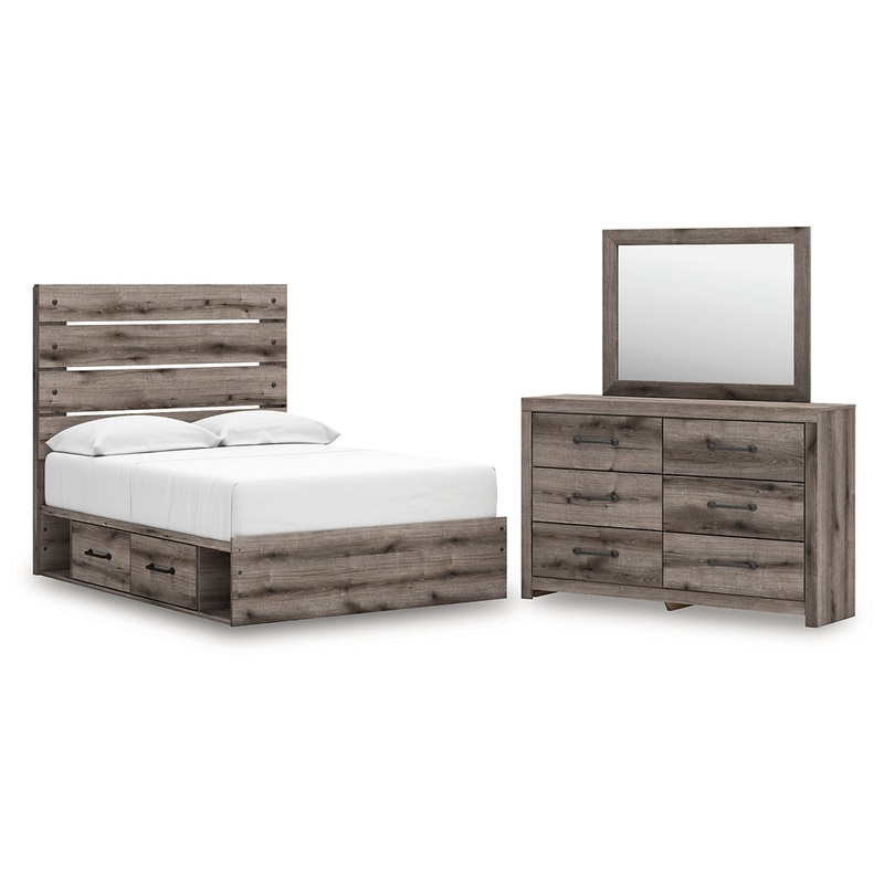 Graystorm Full Panel Bed with Storage with Mirrored Dresser