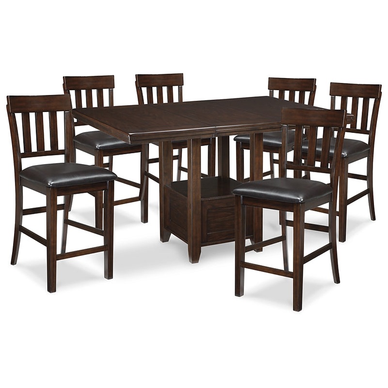 | Details | D596-42: Made of veneers, wood and engineered wood, Separate extension leaf, Table extends by pulling both ends and dropping in leaf, Seats up to 6, Assembly required, Bar stools available, sold separately, D596-124: Made of veneers, wood and engineered wood, Vinyl upholstery, Cushioned seat, Slat back design, |