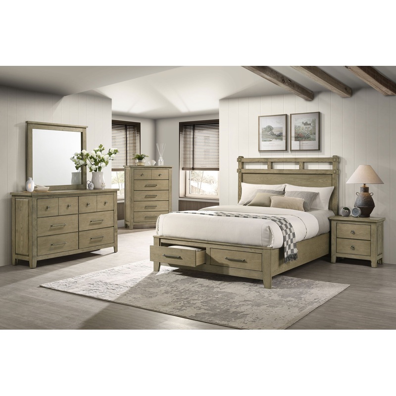 Elevate your space with this bedroom set blending craftsman character and modern utility. A vineyard oak finish enhances the oak grain texture across rubberwood and engineered wood veneer. Antique nickel metal knob and pull handles lend a refined touch to