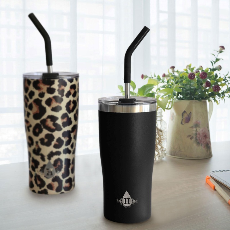 Heritage 20 oz. Double Wall Stainless Steel Tumbler, Set of 2, Black/Leopard The Heritage 20-Ounce Vacuum-Insulated Tumblers are made from 18/8 stainless steel with a double-wall, vacuum-sealed construction and a copper lining. This is designed to maintain
