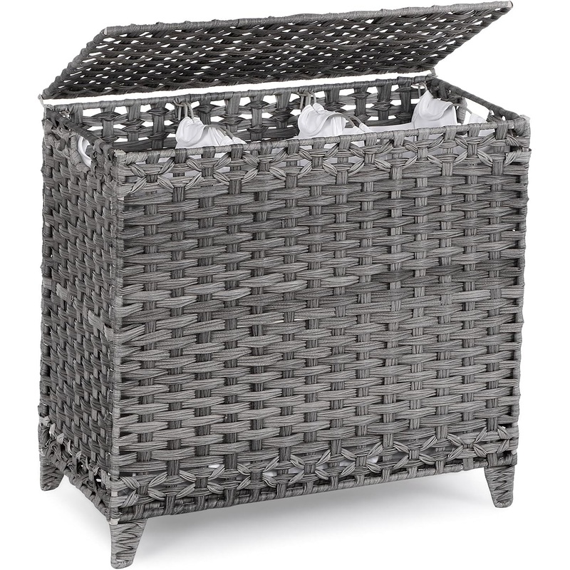 Hermina Laundry Hamper with 3 Removable Liner Bags; 132L Handwoven Rattan Laundry Basket with Lid & Heightened Feet; Clothes Hamper with Side Handles; Laundry Sorter with 3 Separate Sections (Gray) Designed with 3 Removable Liner Bags The laundry hamper ha