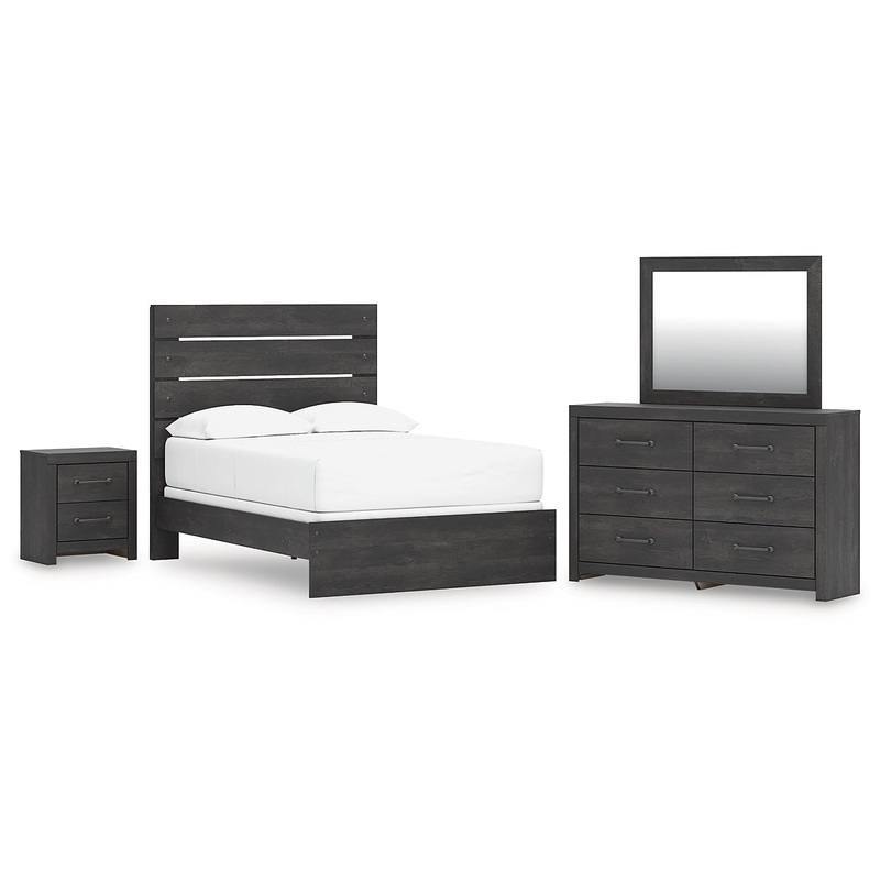 Details PCB2108B12: Includes panel headboard/footboard and rails, Made with engineered wood (MDF/particleboard/plywood) and decorative laminate for the right balance of affordability and durability , Charcoal finish over replicated oak grain with authentic touch, Decorative laminate replicates natural or man-made material surfaces with consistent color, pattern and texture, Foundation/box spring required, sold separately , Mattress available, sold separately, Minor assembly required, PCB2108B1: Includes dresser and mirror, Made with engineered wood (MDF/particleboard/plywood) and decorative laminate for the right balance of affordability and durability , Charcoal finish over replicated oak grain with authentic touch, Decorative laminate replicates natural or man-made material surfaces with consistent color, pattern and texture, Large-scale dark colored handles, 6 smooth-gliding drawers, Drawer interiors are lined with a faux linen laminate for a clean, finished look , Mirror attaches to back of dresser; can also be mounted on wall horizontally or vertically, Safety is a top priority, clothing storage units are designed to meet the most current standard for stability, ASTM F 2057 (ASTM International), Drawers extend out to accommodate maximum access to drawer interior while maintaining safety, Minor assembly required, PCB2108-92: Made with engineered wood (MDF/particleboard/plywood) and decorative laminate for the right balance of affordability and durability, Charcoal finish over replicated oak grain with authentic touch, Decorative laminate replicates natural or man-made material surfaces with consistent color, pattern and texture, Large-scale dark colored handles, 2 smooth-gliding drawers, Drawer interiors are lined with a faux linen laminate for a clean, finished look, 2 slim-profile USB-C charging ports, Power cord included; UL Listed, Minor assembly required,