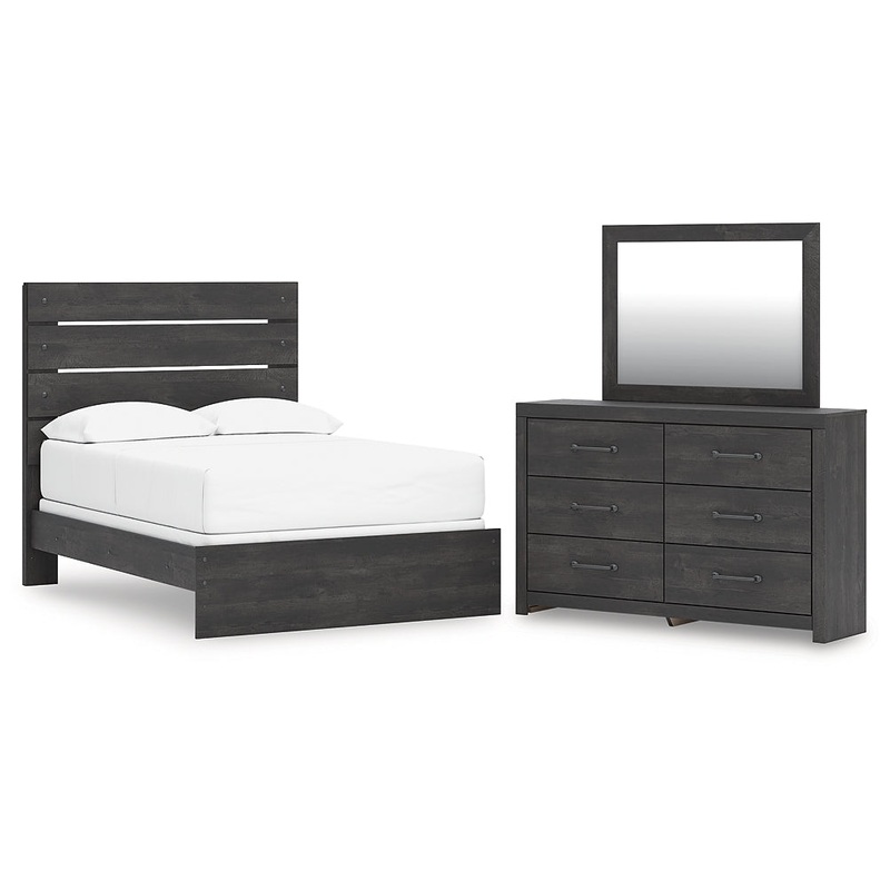 | Details | PCB2108B12: Includes panel headboard/footboard and rails, Made with engineered wood (MDF/particleboard/plywood) and decorative laminate for the right balance of affordability and durability , Charcoal finish over replicated oak grain with authentic touch, Decorative laminate replicates natural or man-made material surfaces with consistent color, pattern and texture, Foundation/box spring required, sold separately , Mattress available, sold separately, Minor assembly required, PCB2108B1: Includes dresser and mirror, Made with engineered wood (MDF/particleboard/plywood) and decorative laminate for the right balance of affordability and durability , Charcoal finish over replicated oak grain with authentic touch, Decorative laminate replicates natural or man-made material surfaces with consistent color, pattern and texture, Large-scale dark colored handles, 6 smooth-gliding drawers, Drawer interiors are lined with a faux linen laminate for a clean, finished look , Mirror attaches to back of dresser; can also be mounted on wall horizontally or vertically, Safety is a top priority, clothing storage units are designed to meet the most current standard for stability, ASTM F 2057 (ASTM International), Drawers extend out to accommodate maximum access to drawer interior while maintaining safety, Minor assembly required, |