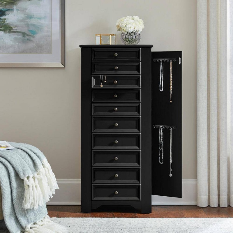 Home Decorators Collection JS-3426-B Bradstone Charcoal Black Jewelry Armoire Organize your jewelry and other small accessories in this stylish and practical Home Decorators Collection Bradstone Jewelry Armoire. It features doors with hooks for hanging nec