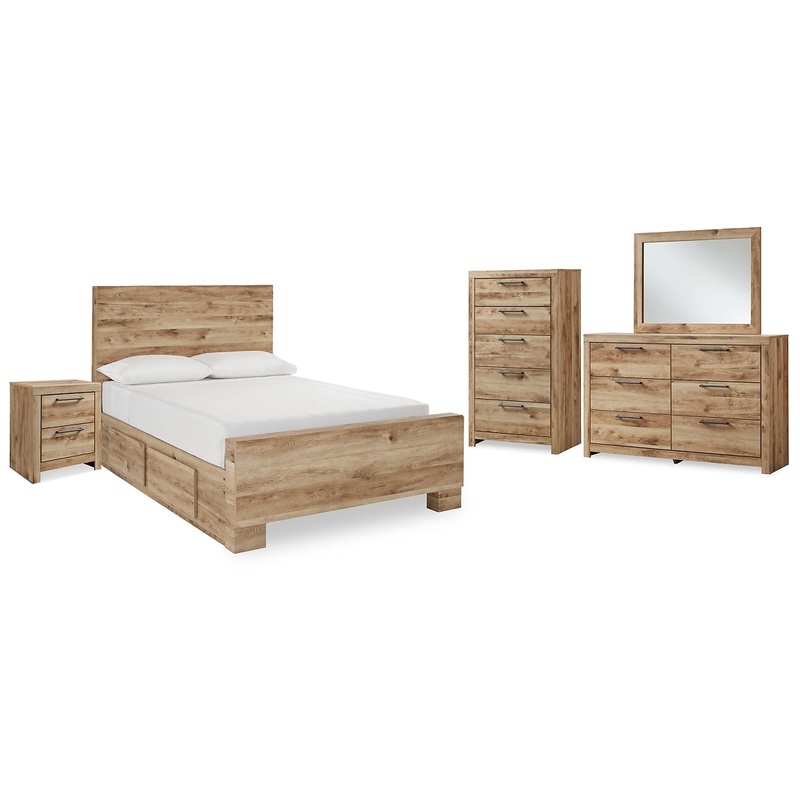 Hyanna Full Panel Bed with Storage with Mirrored Dresser, Chest and Nightstand
