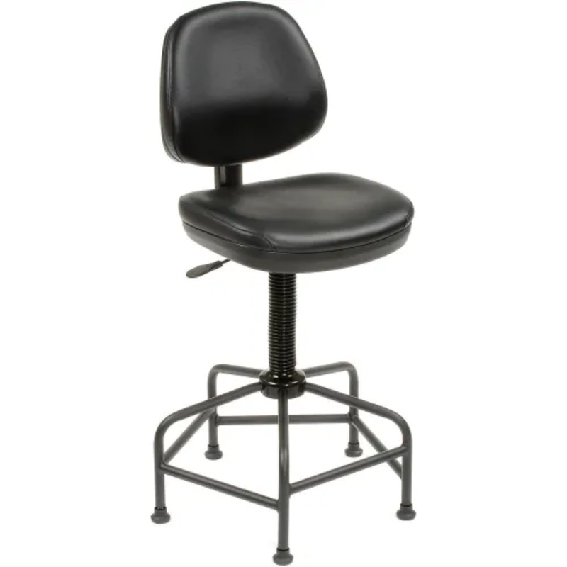 This black Interion Vinyl Armless Spider Base Shop Stool is built to offer comfortable seating in any shop environment. It features a sturdy steel frame, contoured seat with a waterfall edge, contoured backrest, a 5-position footrest ring, a highly-stable spider base, and non-marking glides on the feet. To customize it for optimum comfort the seat & backrest height can be easily adjusted. Limited 2-Year Warranty.