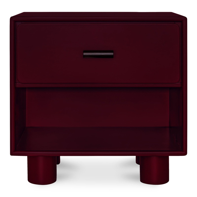 Jolene - Accent Nightstand - RedProduct FeaturesPlayful legs, paired back frame, & handle detailingRubberwood frame & leg with MDF top, side, back, & drawerOne soft close drawer with side mounted glides & open shelfAssembly requiredJolene - Accent Nightsta
