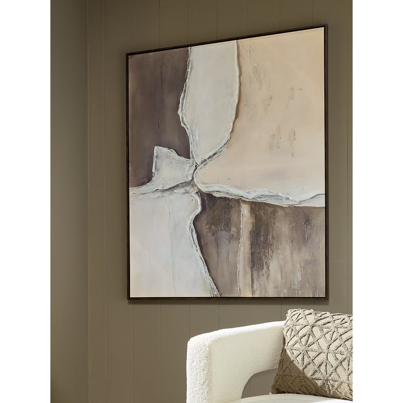 Contemporary neutral hues, reimagined. This wall art's abstract design incorporates movement into your decor, while hand-painted embellishments perfect the look. Need a change of perspective? With the ability to hang the piece four ways, you can switch up