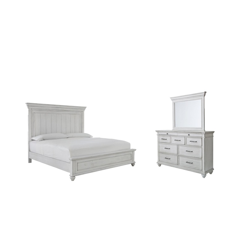 | Details | B777B1: Includes dresser and mirror, Made with solid wood, veneers and engineered wood, Distressed whitewash finish, Dark gray pewter-tone finished metal hardware, 7 smooth-gliding drawers, plus 2 small-scaled accessory drawers, Mirror attaches to back of dresser, Assembly required, B777B2: Includes queen panel headboard, footboard and rails, Made with solid wood, veneers and engineered wood, Distressed whitewash finish, Foundation/box spring required, sold separately, Mattress available, sold separately, Assembly required, |
