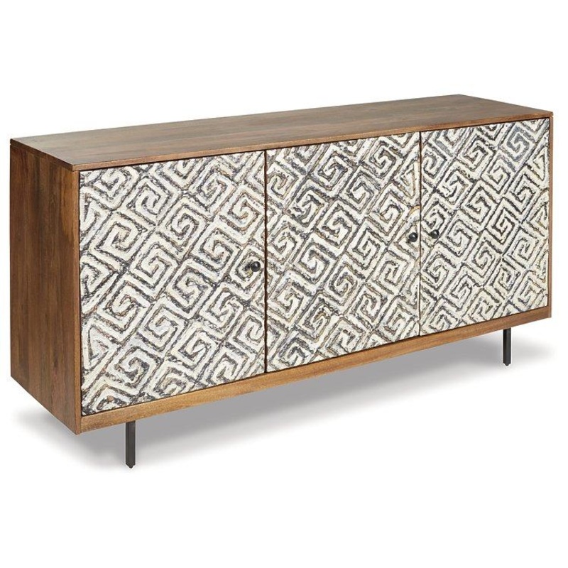 If youre looking for a cool, clean-lined accent piece loaded with character, then youll surely want to carve out some space for this accent cabinet. Fabulous flush-mount doors wow with their carved Greek key design for added dimension and tonal contrast. T