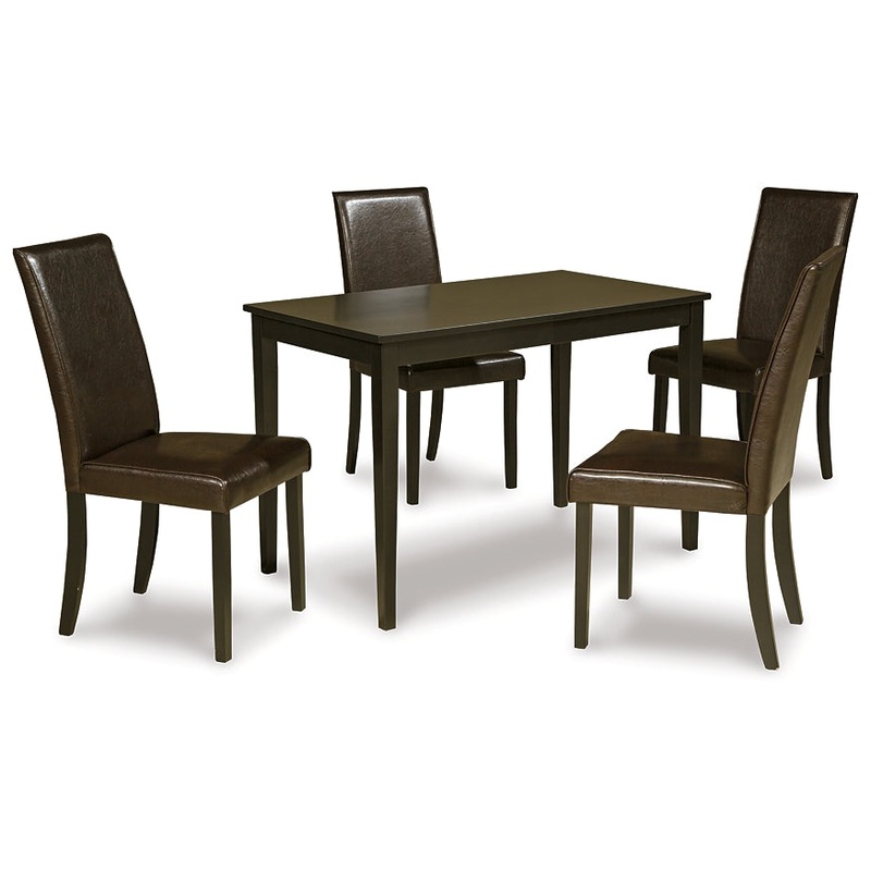 This sleek 5-piece dining room set might be big on style, but its petite scale is ideally suited for small spaces. With a dark finish and a minimalist design, the table is the epitome of contemporary decor. Four comfortably cushioned high-back chairs covered in a dark brown faux leather make it easy to linger at the table.