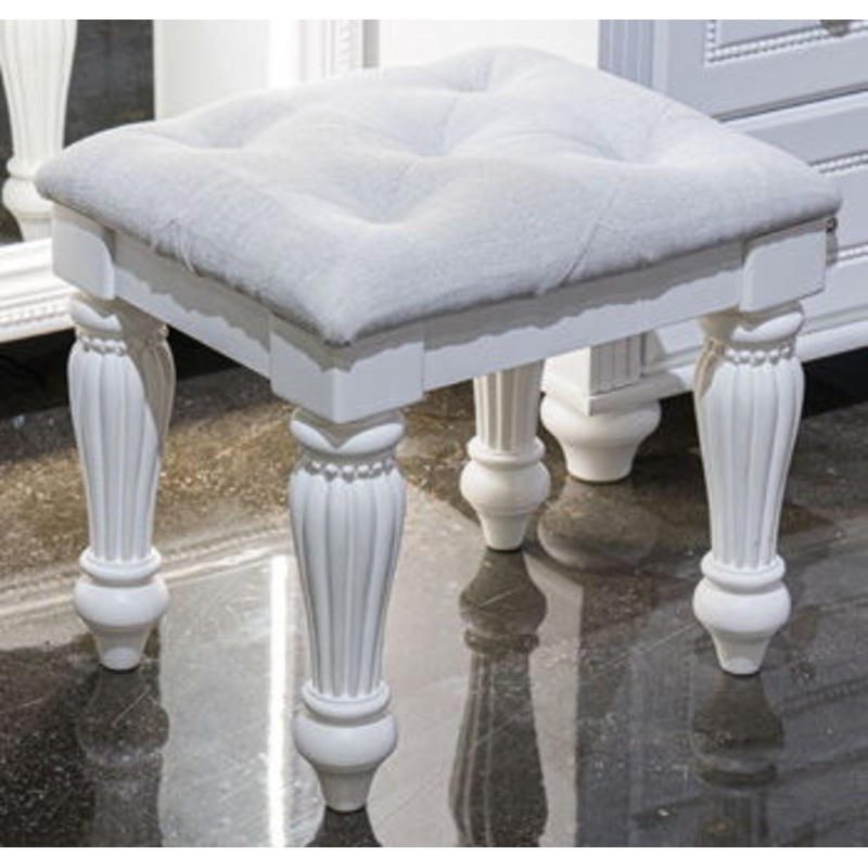 Fit for a princess. This vanity stools crisp matte white finish pairs with charming elements like turned legs, ornate beading and sumptuous button-tufted upholsteryperfect for your girly girl. This piece's crowning touches are sure to make your little one