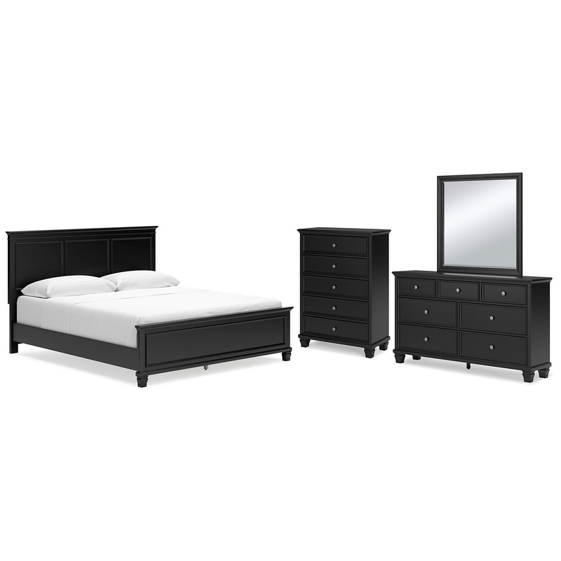 | Details | B687B9: Includes California king panel headboard, footboard and rails, Made with hardwood solids, birch veneer and MDF substrate, Black painted finish, Thick profiled tops, Tapered feet, Foundation/box spring required, sold separately, Mattress available, sold separately, Assembly required, Bed is compatible with an adjustable base, B687B1: Includes dresser and mirror, Made with hardwood solids, birch veneer and MDF substrate, Black painted finish, 7 smooth-gliding drawers with dovetail construction and ball-bearing side glides, Round metal drawer knobs with satin nickel-tone finish, Framed drawer fronts, Tapered feet, Mirror attaches to back of dresser, Assembly required, B687-46: Made with hardwood solids, birch veneer and MDF substrate, Black painted finish, 5 smooth-gliding drawers with dovetail construction and ball-bearing side glides, Round metal drawer knobs with satin nickel-tone finish, Framed drawer fronts, Tapered feet, |