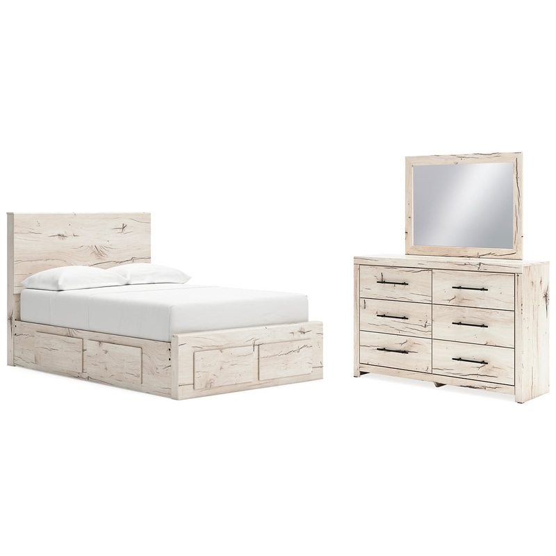 | Details | B2310B20: Includes panel headboard, storage footboard, platform rails and roll slats , Made with engineered wood (MDF/particleboard/plywood) and decorative laminate for the right balance of affordability and durability, Rustic white finish over replicated reclaimed oak grain with authentic touch, Decorative laminate replicates natural or man-made material surfaces with consistent color, pattern and texture, 2 smooth-gliding storage drawers, Drawer interiors are lined with a faux linen laminate for a clean, finished look, Bed does not require additional foundation/box spring; accommodates most zero clearance adjustable bases with the addition of a bunkie board , Mattress available, sold separately, Minor assembly required, B2310B1: Made with engineered wood (MDF/particleboard/plywood) and decorative laminate for the right balance of affordability and durability, Rustic white finish over replicated reclaimed oak grain with authentic touch, Decorative laminate replicates natural or man-made material surfaces with consistent color, pattern and texture, Handles with dark pewter-tone finish, 6 smooth-gliding drawers, Drawer interiors are lined with a faux linen laminate for a clean, finished look, Framed front and pilasters, Safety is a top priority, clothing storage units are designed to meet the most current standard for stability, ASTM F 2057 (ASTM International), Drawers extend out to accommodate maximum access to drawer interior while maintaining safety, Mirror attaches to back of dresser; can also be mounted on wall horizontally or vertically , Minor assembly required, |
