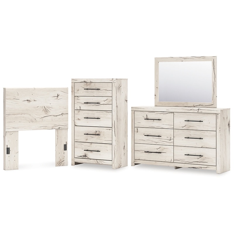 | Details | B2310-53: Made with engineered wood (MDF/particleboard/plywood) and decorative laminate for the right balance of affordability and durability, Rustic white finish over replicated reclaimed oak grain with authentic touch, Decorative laminate replicates natural or man-made material surfaces with consistent color, pattern and texture, ” bolts (not included) are needed to attach headboard to your existing bed frame, Minor assembly required, B2310B1: Made with engineered wood (MDF/particleboard/plywood) and decorative laminate for the right balance of affordability and durability, Rustic white finish over replicated reclaimed oak grain with authentic touch, Decorative laminate replicates natural or man-made material surfaces with consistent color, pattern and texture, Handles with dark pewter-tone finish, 6 smooth-gliding drawers, Drawer interiors are lined with a faux linen laminate for a clean, finished look, Framed front and pilasters, Safety is a top priority, clothing storage units are designed to meet the most current standard for stability, ASTM F 2057 (ASTM International), Drawers extend out to accommodate maximum access to drawer interior while maintaining safety, Mirror attaches to back of dresser; can also be mounted on wall horizontally or vertically , Minor assembly required, B2310-46: Made with engineered wood (MDF/particleboard/plywood) and decorative laminate for the right balance of affordability and durability, Rustic white finish over replicated reclaimed oak grain with authentic touch, Decorative laminate replicates natural or man-made material surfaces with consistent color, pattern and texture, Handles with dark pewter-tone finish, 5 smooth-gliding drawers, Drawer interiors are lined with a faux linen laminate for a clean, finished look, Framed front and pilasters, Safety is a top priority, clothing storage units are designed to meet the most current standard for stability, ASTM F 2057 (ASTM International), Drawers extend out to accommodate maximum access to drawer interior while maintaining safety, Minor assembly required, |