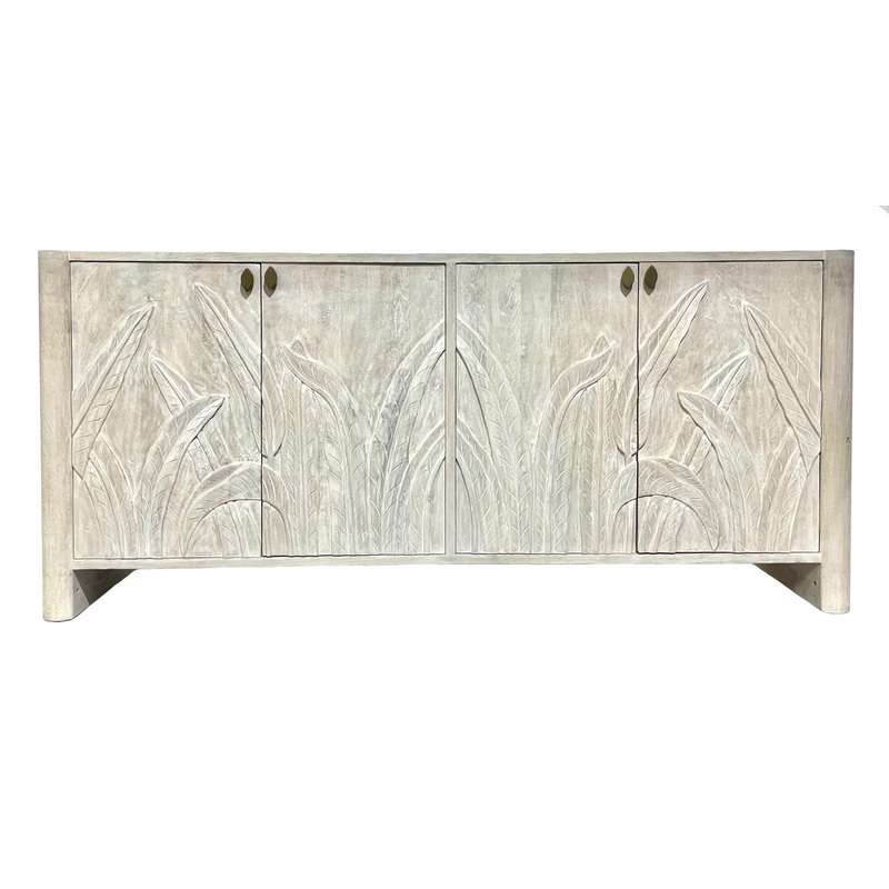 The Ledro Cabinet beautifully combines style and functionality. Crafted from durable Mango Wood, this cabinet is enhanced with beautiful carvings that add an artistic touch and elevate its design. With its intricate details, this cabinet serves as a stunning centerpiece, effortlessly complementing a variety of interior styles while offering practical storage in any space.
