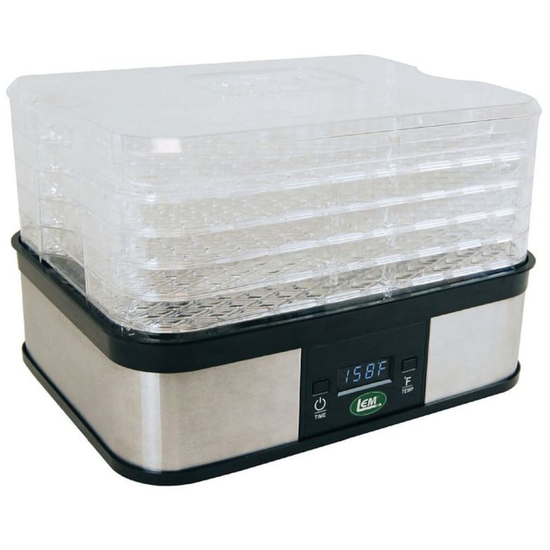LEM 5-Tray Digital Dehydrator Product Description The LEM 5-Tray Digital Dehydrator is a countertop dehydrator perfect for making jerky, dried fruit, and other tasty snacks. The digital display on this 5-tray dehydrator allows you to easily set the drying