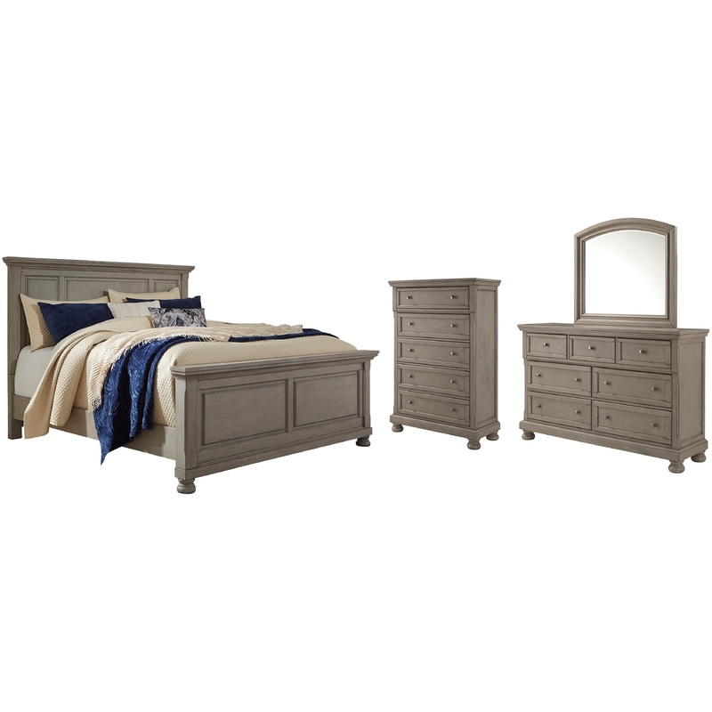 Lettner King Panel Bed with Mirrored Dresser and Chest