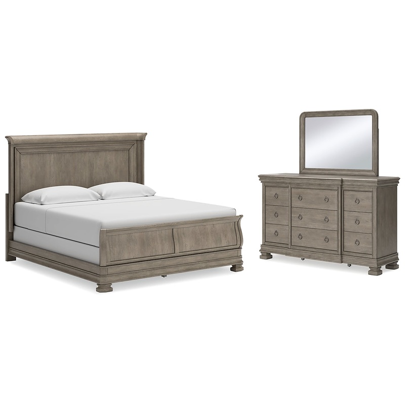 Lexorne California King Sleigh Bed with Mirrored Dresser