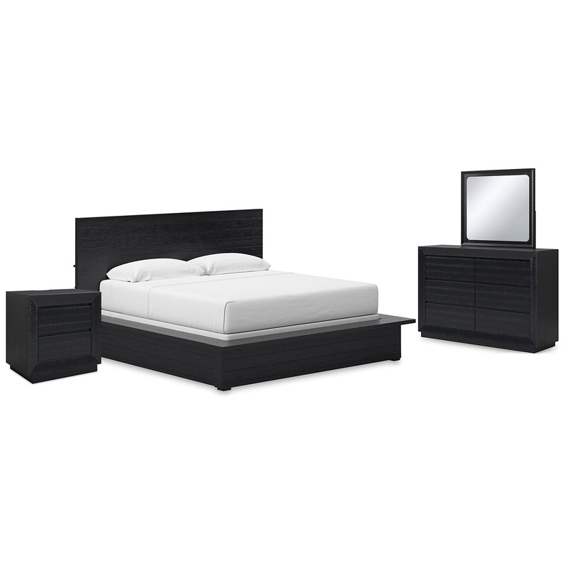 | Details | B768B4: Includes headboard, footboard and rails, Made with pine solids, veneers and engineered wood substrate, Textured black wood stain with waxy topcoat, Extra wide rails for a bench-like wrap around, Foundation/box spring required, sold separately, Mattress available, sold separately, Assembly required, B768B1: Includes dresser and mirror, Made with pine solids, veneers and engineered wood substrate, Textured black wood stain with waxy topcoat, Hardware-less design, 6 drawers with fully finished interiors, dovetail construction and ball-bearing side glides (top drawers felt lined), Mirror attaches to back of dresser, B768-92: Made with pine solids, veneers and engineered wood substrate, Textured black wood stain with waxy topcoat, Hardware-less design, 2 drawers with fully finished interiors, dovetail construction and ball-bearing side glides, 110V power supply with dual USB charging ports, Power cord included; UL Listed, |