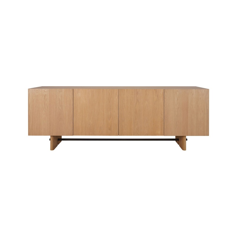 Madison - Sideboard - Light BrownProduct FeaturesMinimal design with carved handle on top of rounded edge door frameSolid oak tabletop & base edge with oak veneer over plywood tabletop & leg. Metal spreader barTwo arched carvings on two bullnose edged legs