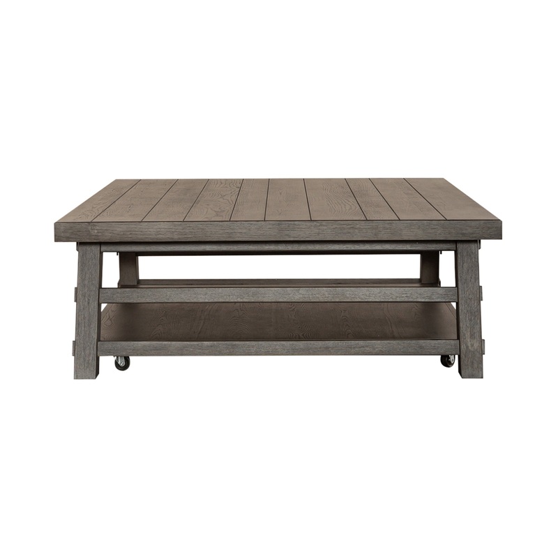 The Modern Farmhouse Coffee Table brings warmth and rustic charm to your living space. With a planked top, high-low veneer pattern, and splayed legs, its a perfect fusion of classic and contemporary style. Finished in Flea Market White and Dusty Charcoal f