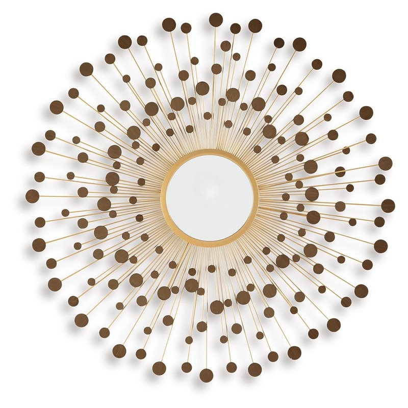 Light and bright, this accent mirror is a trendy take on wall decor. Its metallic spokes splay outward to create a sculpture-like frame. With goldtone and bronze-tone finishes, the piece is a reflection of your eye for contemporary design.Additional Dimens