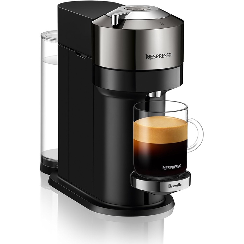 Nespresso Vertuo Next Coffee and Espresso Machine by Breville,1.1 liters, Dark Chrome The Vertuo Next brings fast and versatile coffee brewing to your countertop. The one button operation offers five programmable cup sizes and the adjustable drip tray crea