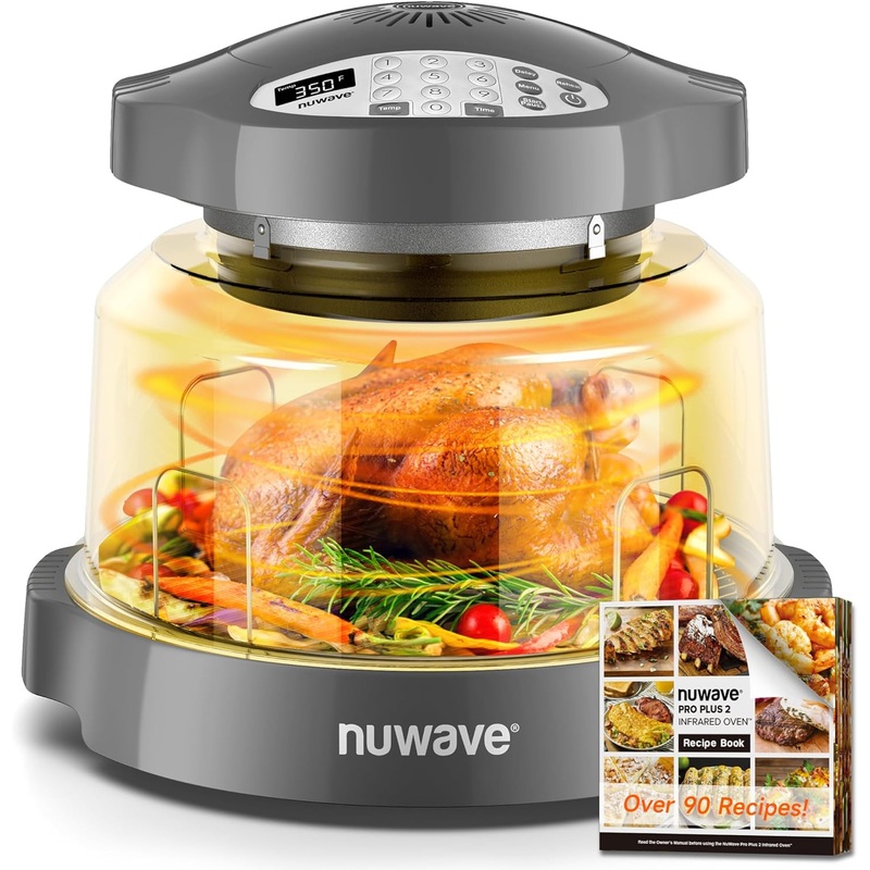 Nuwave Oven Pro Plus Air Fryer, Infra-Red Countertop, 2025 Advanced Convection, No Defrosting or Preheating, Cook Fresh or Frozen, Durable Power Dome, 100 Presets & 50 Memory, PFAS Free, Cool Grey COOK FROM FROZEN WITHOUT DEFROSTING OR PREHEATING Pro Plus