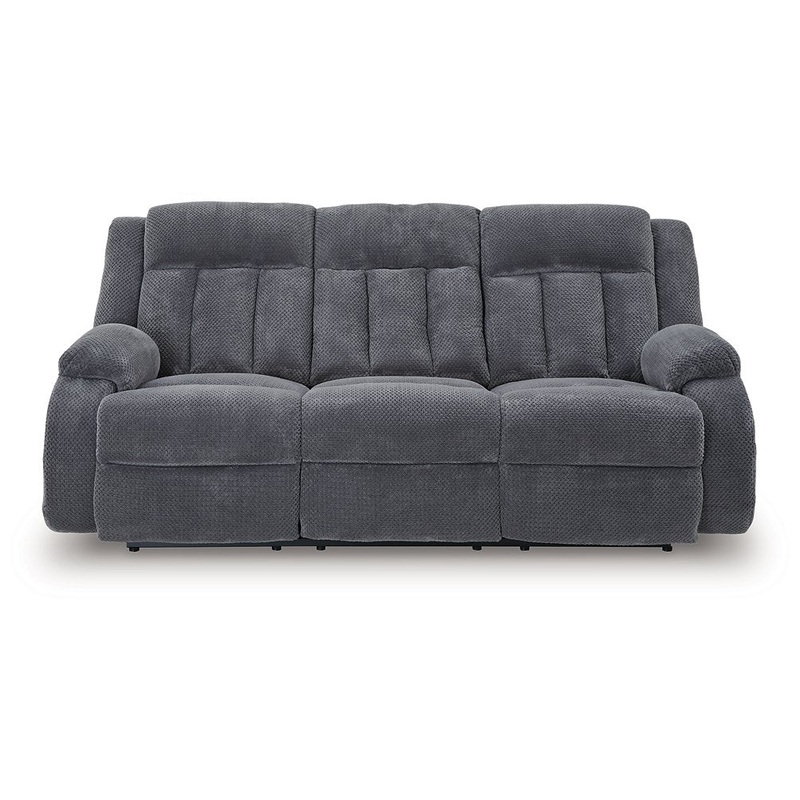 There's no need to sacrifice looks for comfortthis power reclining sofa with drop-down table serves up both, plus a richly relaxed sense of style. Its steel-hued velvet upholstery is ultra soft, with a plush waffle weave for an added layer of interest. The