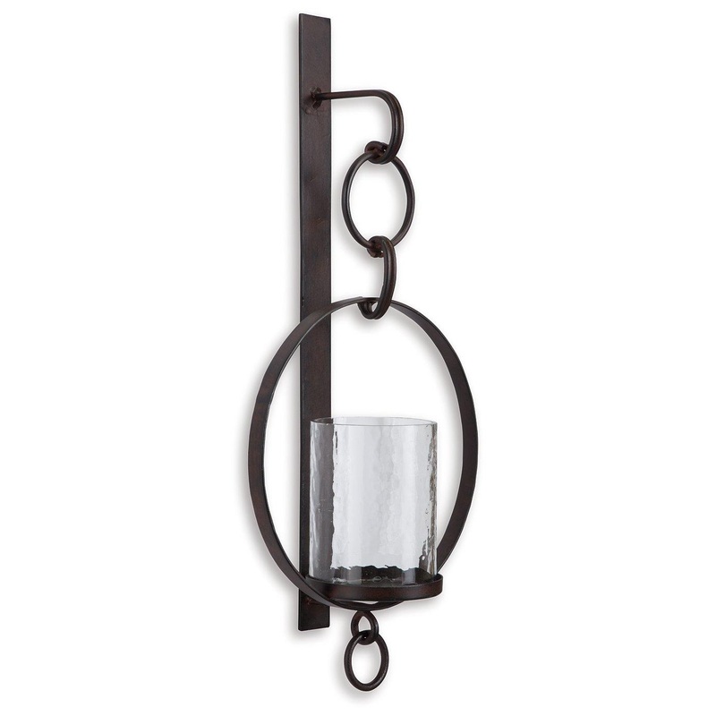 Hang out in style. Bring warmth and flair to an overlooked space with this wall sconce and candle holder. Dark bronze-tone metal and clear glass make a striking combination. Aligned or staggered, theyre even more beautiful when paired.