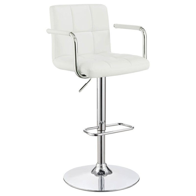 Upgrade your seating experience with this sleek hydraulic gas lift adjustable bar stool, perfect for modern kitchens or home bars. The stool features a cushioned seat with stylish tufting and a durable faux leather finish, providing both comfort and easy maintenance. Its adjustable height mechanism lets you find the perfect fit, while the chrome base and footrest add a polished, contemporary look. The integrated armrests offer added support, making it ideal for leisurely meals or casual gatherings. Enjoy both functionality and style with this versatile, high-quality bar stool.