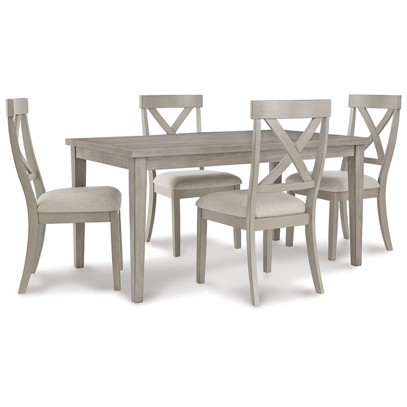Bring a relaxed yet refined sense of good taste to a space with this casually cool dining package. Its clean-lined frames sport a gray finish thats so easy on the eyes, making this set an inspired choice for modern farmhouse living.