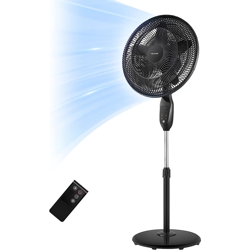 PELONIS PFS45A5BBB 18 inch 5-Blade Oscillating, Adjustable Standing Pedestal Remote, LED Display, 5 Speed Setting and 7-Hour Timer Fan, Black