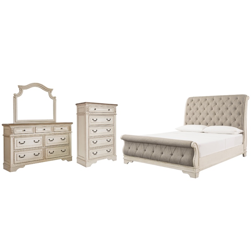 | Details | B743-46: Made of veneers, wood and engineered wood, with cast resin components, Antiqued two-tone finish, Dark bronze-tone finished metal hardware, 5 smooth-gliding drawers with dovetail construction, Includes tipover restraint device, Small Space Solution, Includes tipover restraint device, B743B1: Made of veneers, wood and engineered wood, with cast resin components, Antiqued two-tone finish, 7 smooth-gliding drawers with dovetail construction, Dark bronze-tone hardware, Mirror attaches to back of dresser, Assembly required, Includes tipover restraint device, B743B10: Made of wood and engineered wood, with cast resin components, Includes headboard, footboard and rails, Distressed, chipped white finish, Polyester upholstery with foam cushion and button tufting, Foundation/box spring required, sold separately, Mattress available, sold separately, Assembly required, Bed is compatible with an adjustable base, |