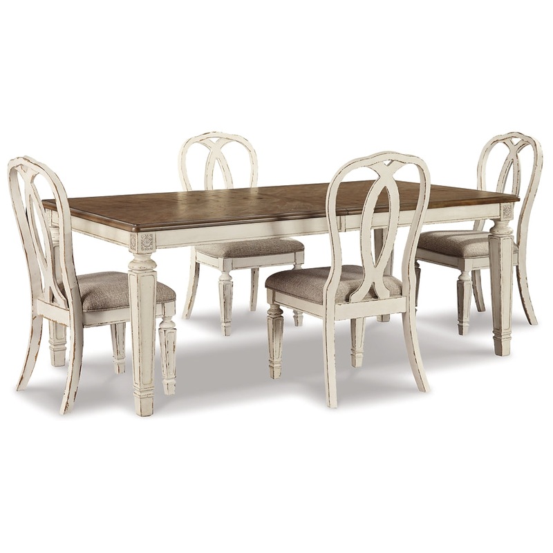 | Details | D743-35: Made of veneers, wood and engineered wood, Antiqued two-tone finish, Separate extension leaf, Table extends by pulling both ends and dropping in leaf, Seats up to 6, Assembly required, D743-01: Made with wood and engineered wood, Distressed, chipped white finish, Ladderback styling, Polyester upholstery over foam cushioned seat, Assembly required, |